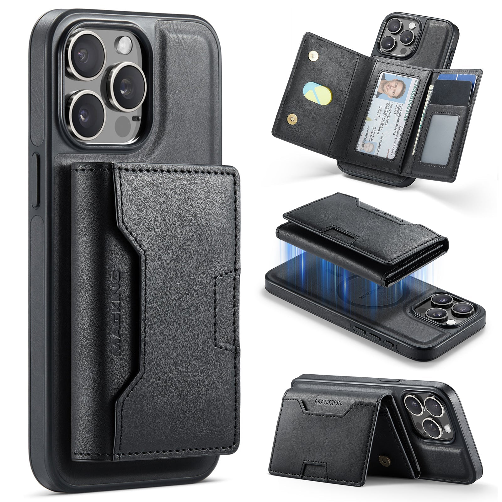 New 2-IN-1 RFID Blocking Wallet Card Holder Leather Phone Case for iPhone 13 Pro Max