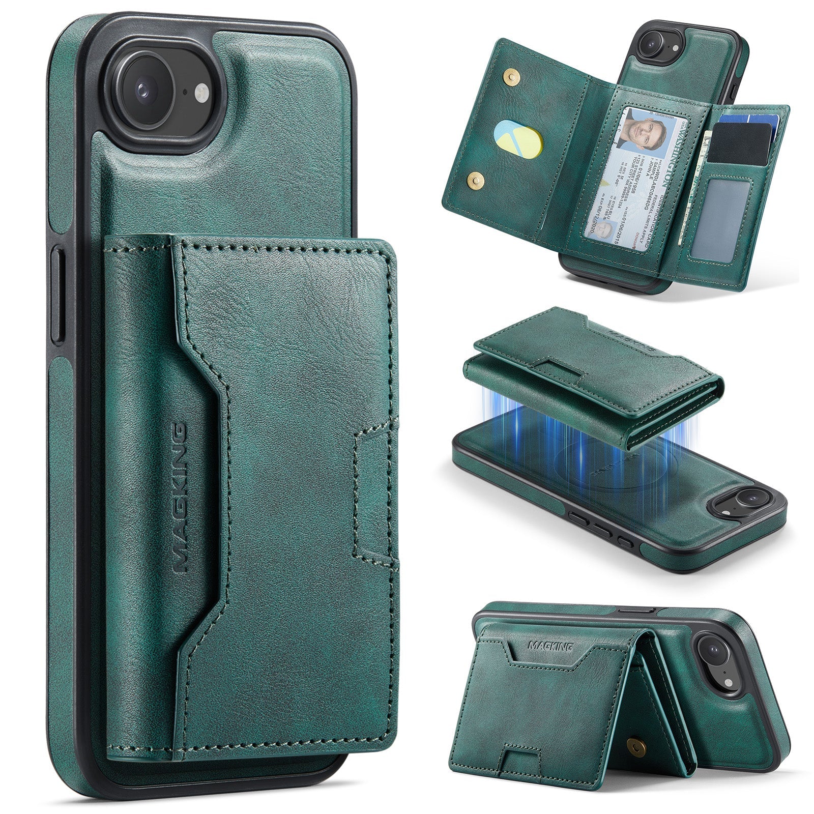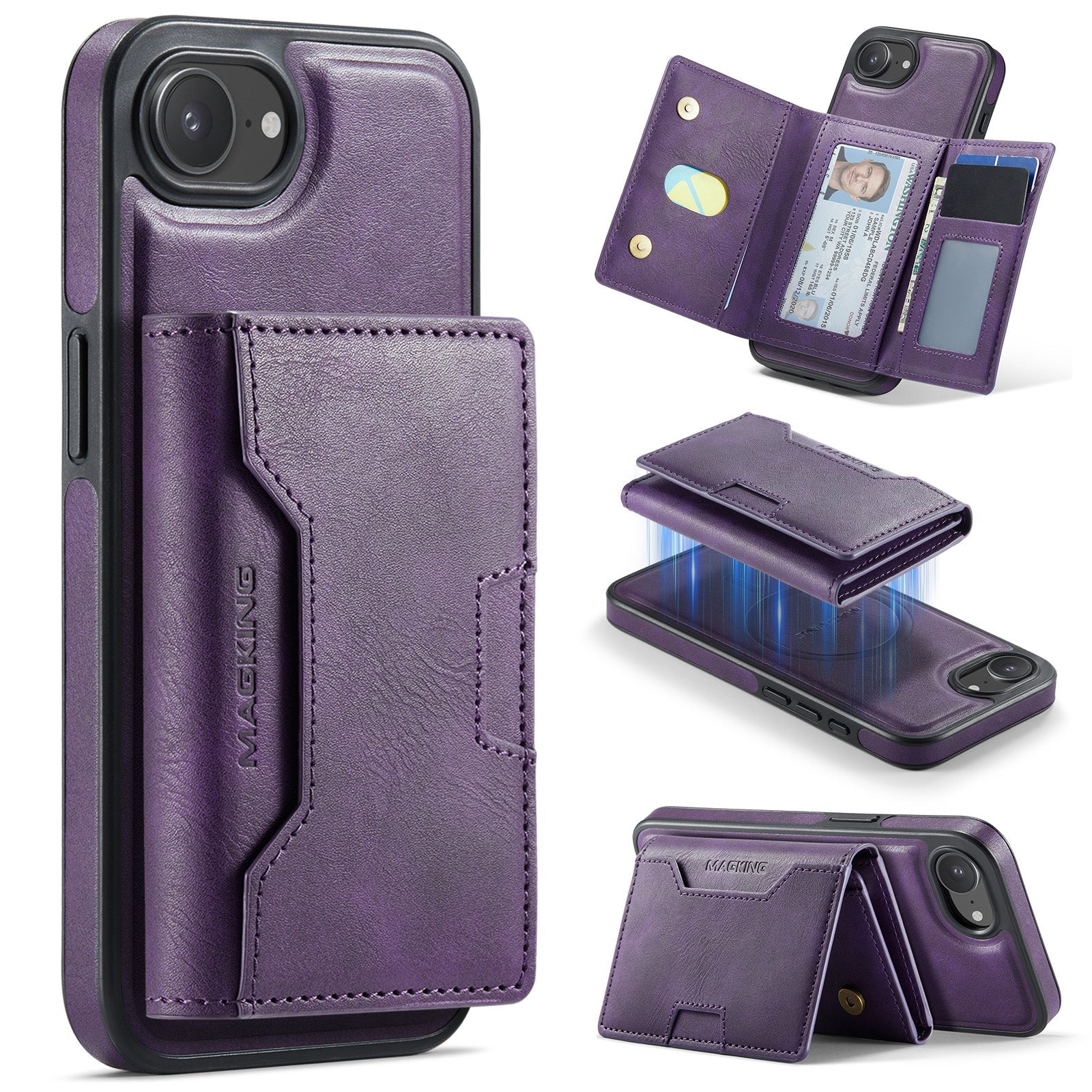 New 2-IN-1 RFID Blocking Wallet Card Holder Leather Phone Case for iPhone 16e