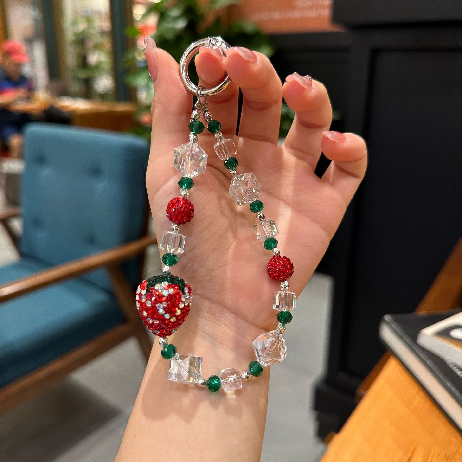 New Bling Rhinestone Strawberry Phone Lanyard Keychain Pendant