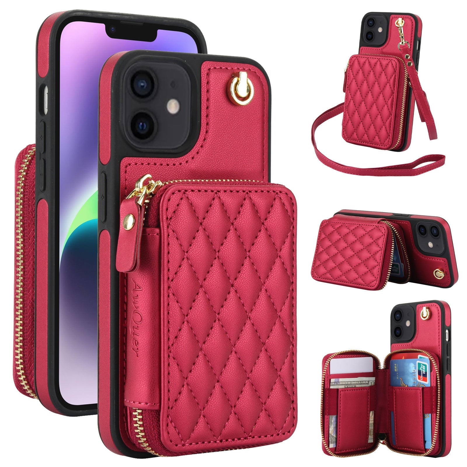 New RFID Blocking Crossbody Zipper Wallet Leather Phone Case for iPhone 12/12 Pro/12 Mini/12 Pro Max