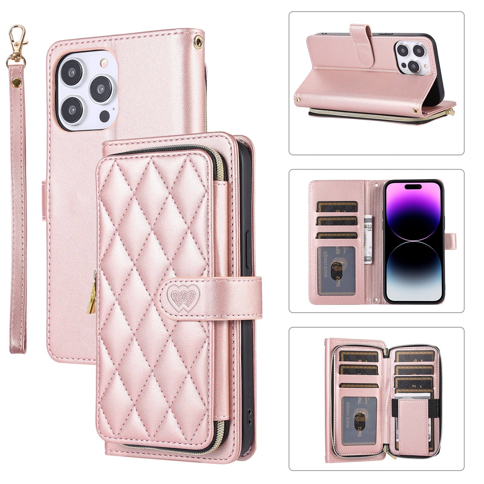 New Zipper Wallet Leather Card Holder Phone Case for iPhone